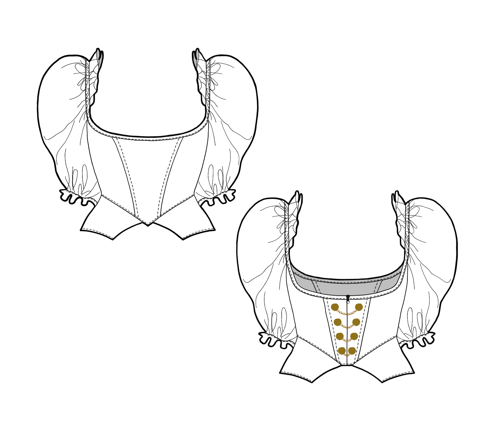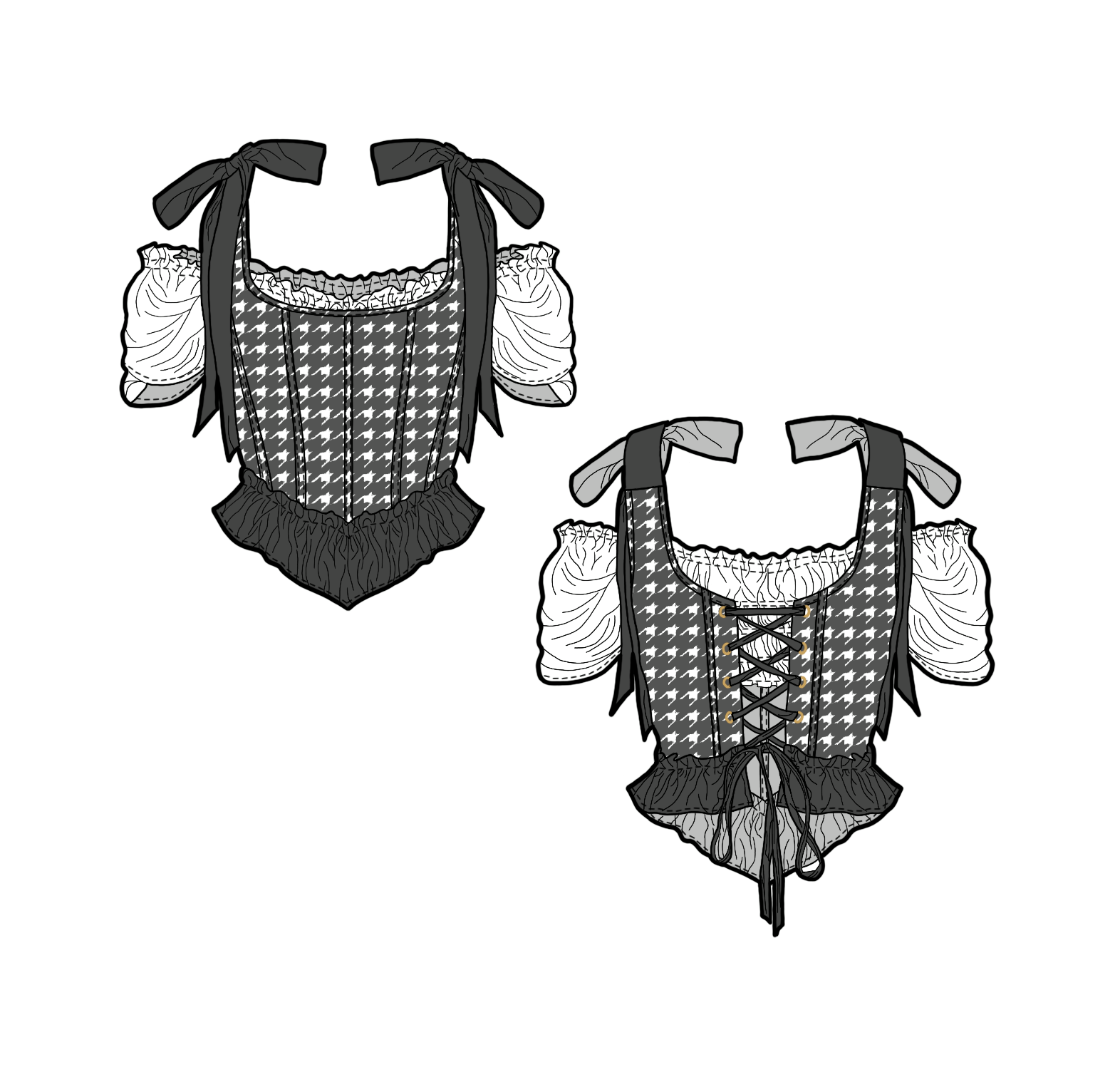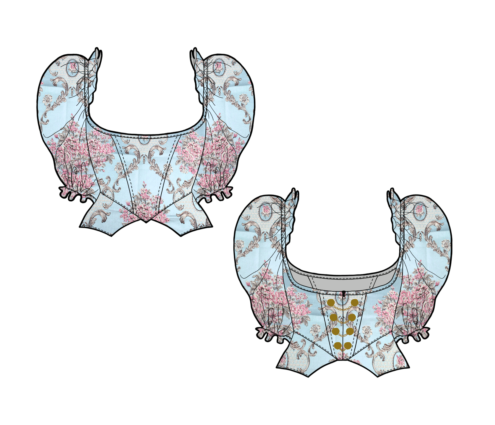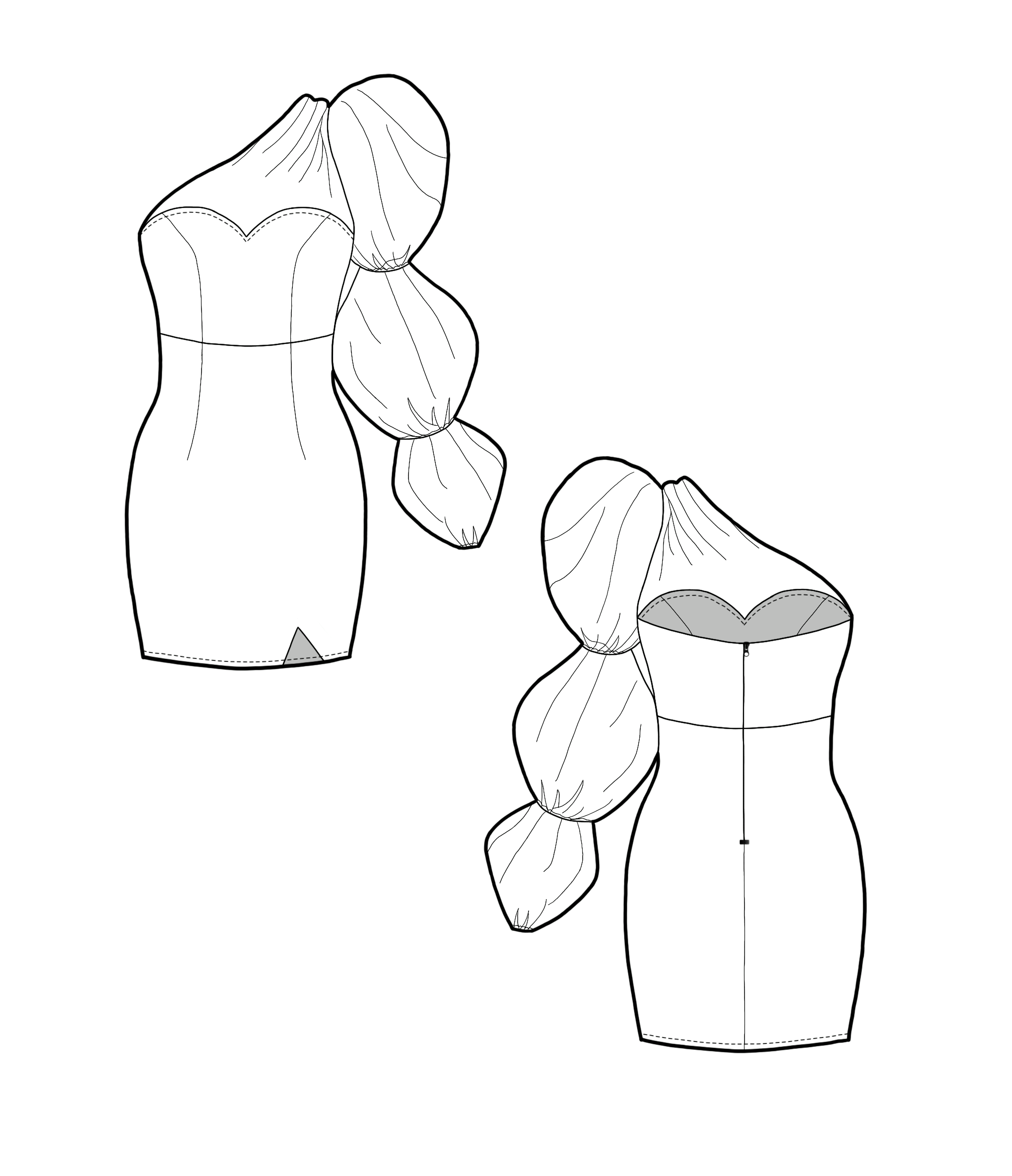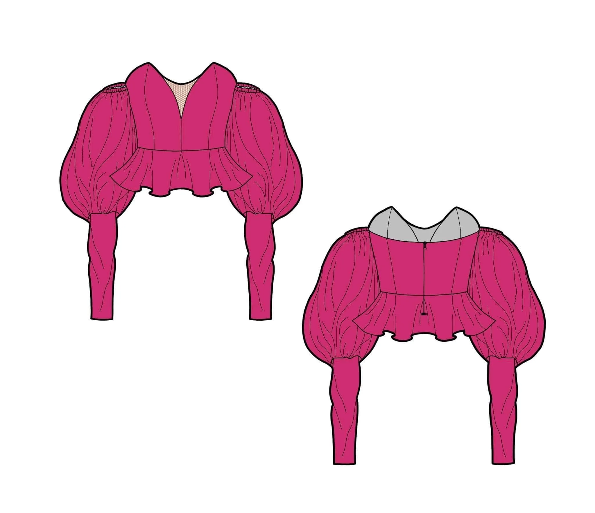 My indie collection with SHEIN X uses historical elements of fashion and form-fitting silhouettes to showcase the beauty and strength of women. Shown below is the design process from initial idea to final product sold by SHEIN for several garments.